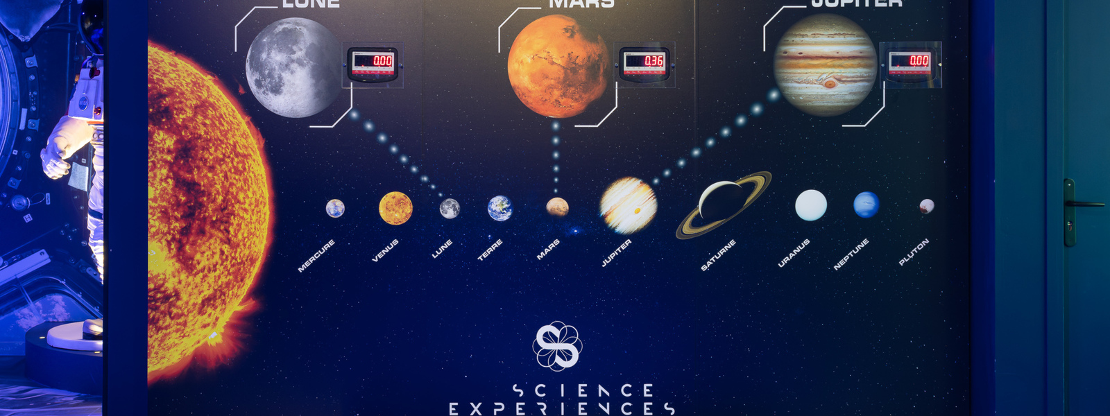 Backed by a panel of scientific experts, Science Expériences offers an immersive multiscience journey that takes visitors to the farthest reaches of the universe, to the heart of the Earth, and all the way to the abyssal depths.