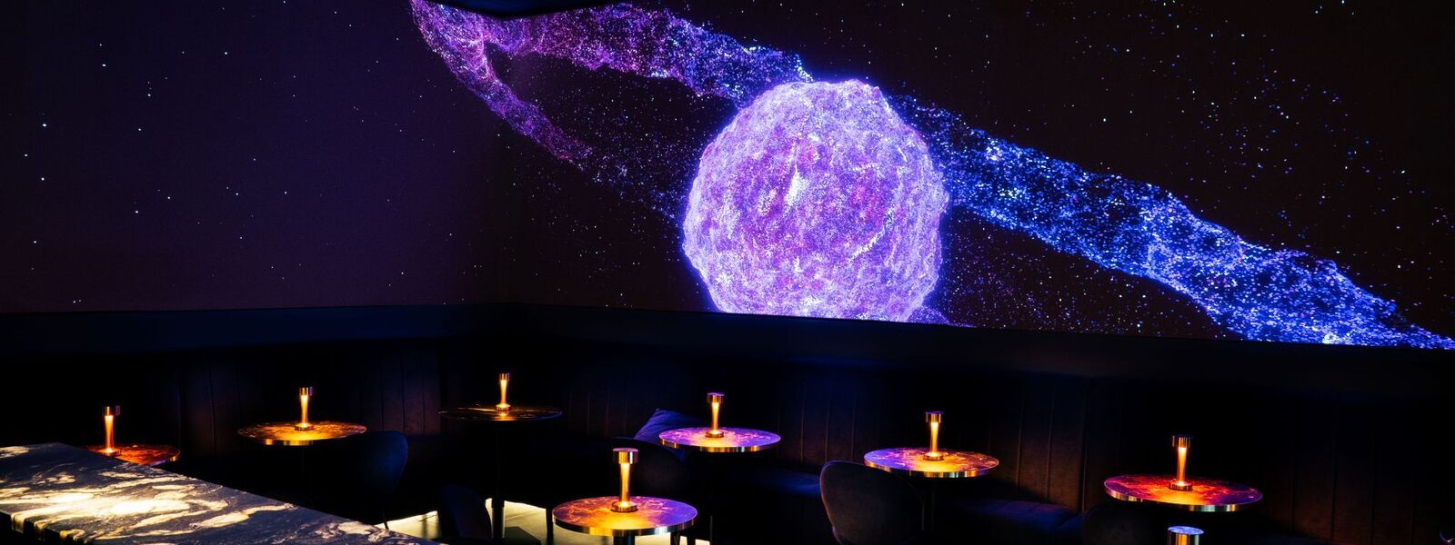 Soft lighting, star-inspired digital projections and soulful music create an intimate, almost mystical atmosphere.