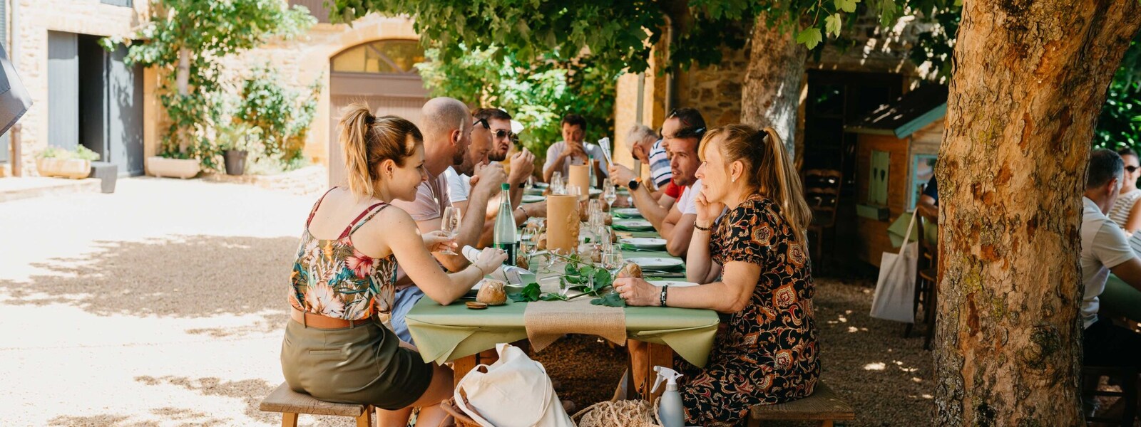Come and join us at the Beaujolais winegrowing estates, with your family, friends or as a couple, for a chic, laid-back gourmet bistro-style meal, seated all together at the same table. The concept of 'Beaujonomie' is all about feeling at home right here in the vineyards!