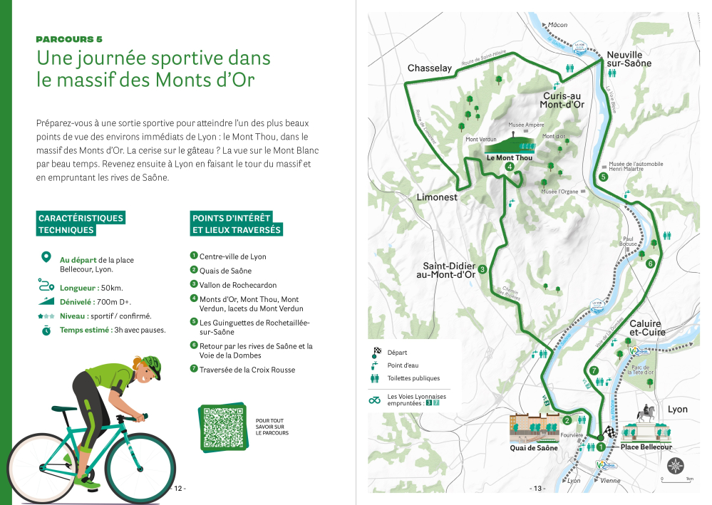 Starting on Place Bellecour, in Lyon city centre, embark on a 50-kilometre circular route, with 700 metres of ascending elevation, which will take you up into the hilly landscapes of the Monts d’Or, and to one of the finest panoramic viewpoints of the city, on Mont Thou.
