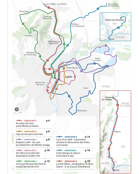 8 cycle tours suggested by the Greater Lyon authority (Métropole de Lyon)